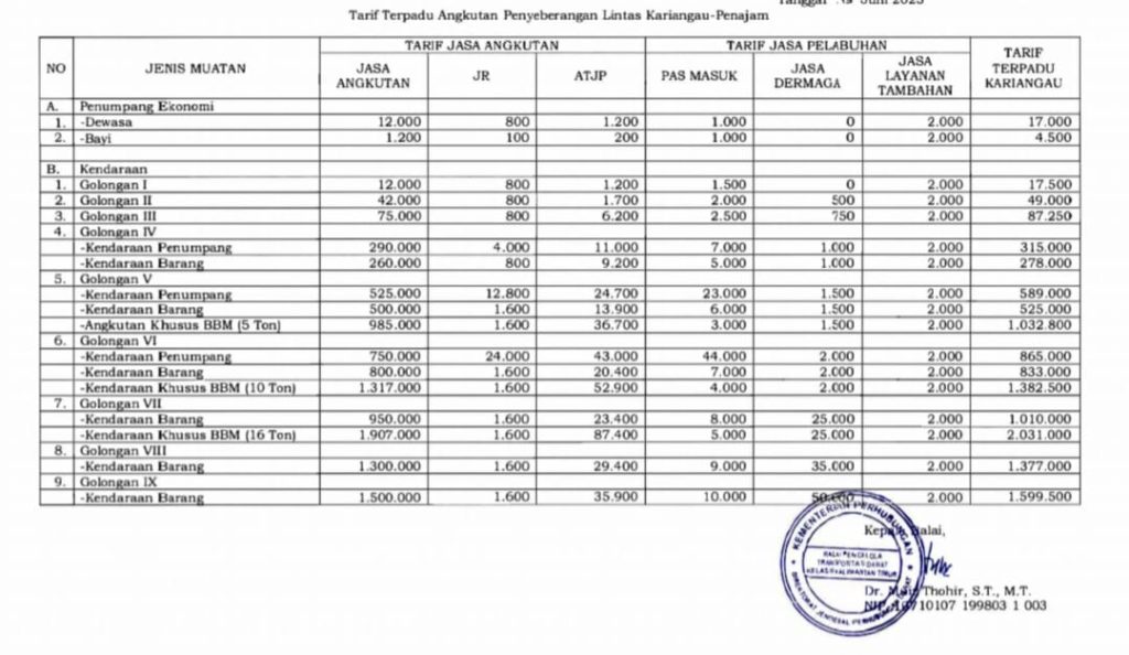 TINTAKALTIM.COM-Mulai 20 Juni 2023, tarif Pelabuhan Feri Kariangau-Penajam Paser Utara (PPU) naik. Ini didasarkan pada SK Gubernur Nomor 100.331/K-244/2023 tertanggal 13 April 2023 atas usulan operator penyelenggara pelabuhan.