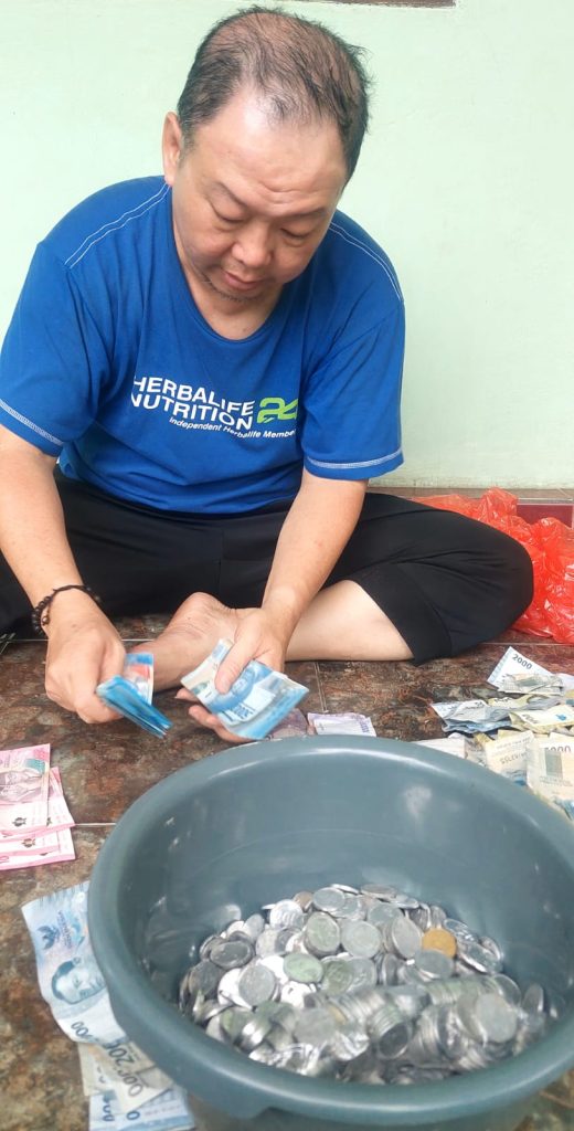 “Nanti yang di RT 38 saya ambil sendiri sambil silaturahmi. Warga mana saja yang belum,” tanya Nur Ali kepada media ini dan menerima penjelasan ada 3 warga yang kediamannya terkunci. Alhasil, celengan susulan totalnya berisi Rp400 ribu lebih