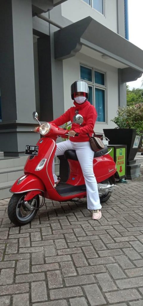 Dirum Nunu, terlihat sangat kontras menggunakan pakaian merah dan putih dan menggunakan sepeda motor vesva ‘tahun jadul’. “Saya terlihat fashionable menggunakan pakaian dan sepeda motor merah karena usai upacara 17 Agustusan 2020 di simpang Balikpapan Plaza,” ujar Nunu. Merdeka! Semoga pelayanan akses air masyarakat khususnya MBR segera tuntas. (git)