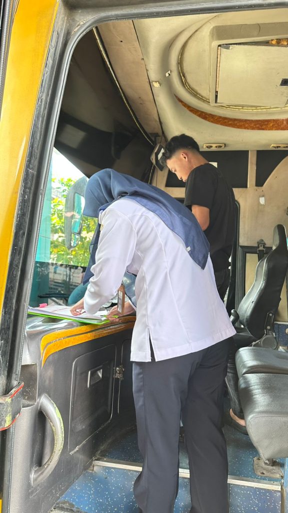 TILANG: Heriyawan dan Rizka langsung memproses bus yang tidak memenuhi syarat administrasi dan tak laik operasinal dengan memberi tilang