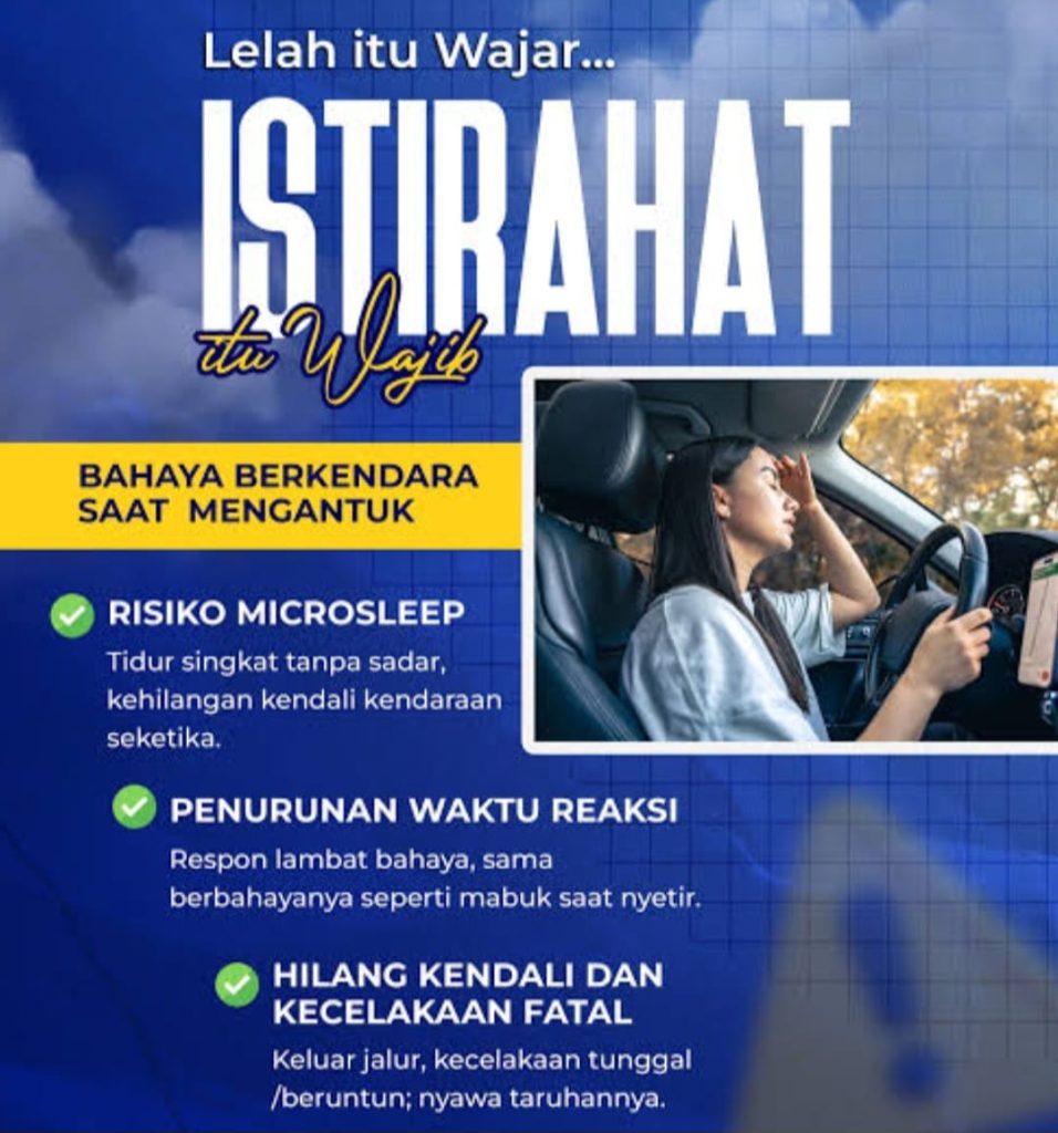Paling krusial saat libur Lebaran 2026, pengemudi jangan mengantuk dan jika lelah bergantian dengan pengemudi lain atau istirahat.