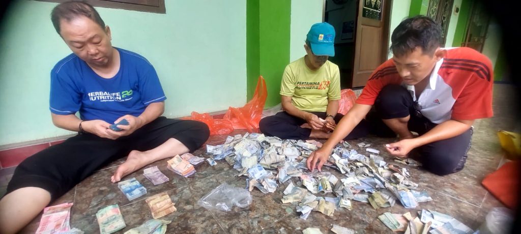 Sementara itu untuk warga RT 38, Nur Ali awalnya bergerak sendiri. Polanya juga door to door menyapa warga dan mengambil isi celengan. “Alhamdulillah, lancar dan warga yang tidak ada mungkin sibuk. Tapi, sore bisa ditindaklanjuti,” kata Nur Ali