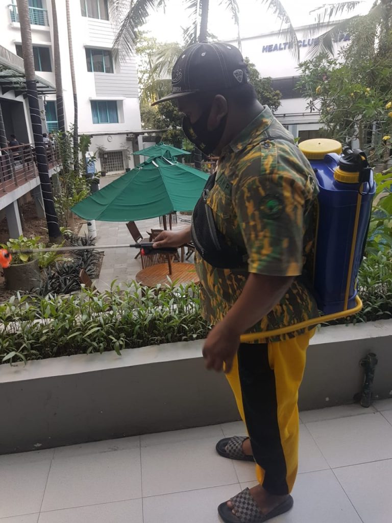 Dari pantauan media ini saat berada di Hotel Blue Sky. Tak hanya di area kamar, seluruh ruang-ruang kantor disemprot oleh petugas dengan disinfektan. Alat disinfektan juga sangat modern. Kecil dan semacam hand sprayer menggunakan listrik. Sehingga, proses penyemprotan detail dan merata hingga di sela-sela ruangan.