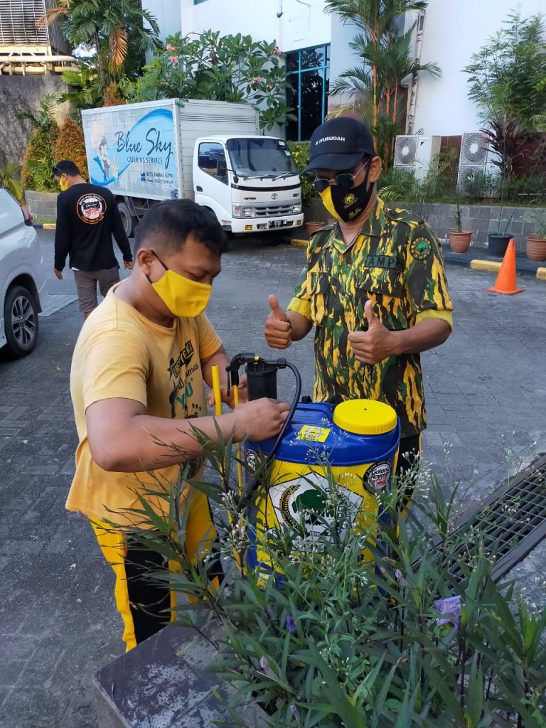 Sebagai wujud menjaga lingkungan hotel bersih, sehat dan aman dari penularan covid-19, Hotel Blue Sky juga bekerjasama dengan relawan Partai Golkar Balikpapan untuk melakukan penyemprotan cairan disinfektan di bagian luar hotel.