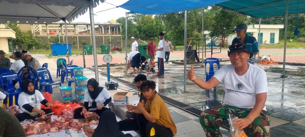 Hadi sejak pagi hingga tuntas mengawasi proses distribusi daging kurban ke masyarakat bersama panitia lainnya. Tahun 2025 memang ada penurunan jika disbanding tahun sebelumnya. Sekarang 700 kupon dan dulu sempat 900 kupon.