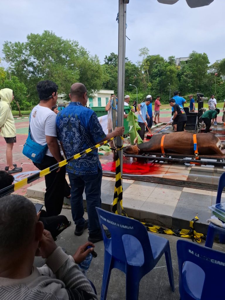 “Alhamdulillah kita masih bisa menyembelih 15 ekor terdiri dari 13 ekor sapi dan 2 ekor kambing. Ada yang patungan per kelompok 7 orang dan juga bantuan instansi,” kata Hadi Suwito yang menyebutkan bantuan sapi dari pihak lain itu adalah PTMB (PDAM) 2 ekor, Nanang M (1 ekor), Sugiat (1 ekor), FKDB Kaltim (1 ekor), Wawali 1 ekor ditambah kambing dari Kisel Group dan Rahmadini Arifiyanti.