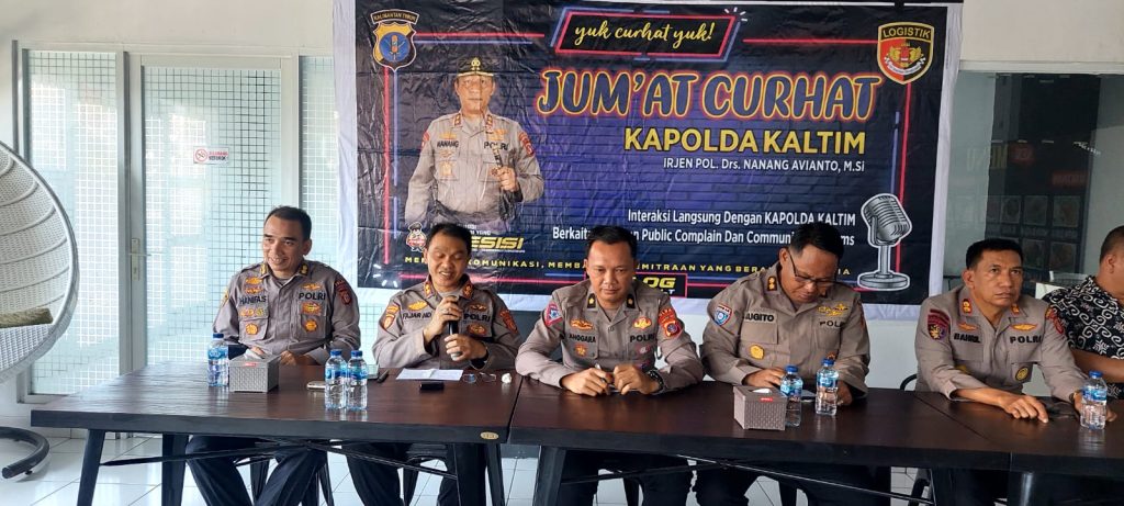 Pelaksana acara Jumat Curhat itu adalah Biro Logistik Polda Kaltim yang dipimpin Karo Logistik Kombes Pol Yayat Ruhiyat Hidayat SIK MH diwakili AKBP Hanifa S dan dihadiri satuan kerja dari direktorat di Polda Kaltim.