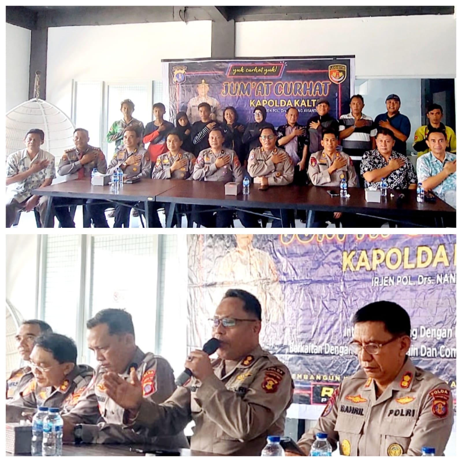 Acara Jumat Curhat berlangsung produktif. Setiap curhatan warga dijawab detail oleh sejumlah narasumber dari direktorat terkait. Kegiatan diakhiri dengan sesi foto bersama antara narasumber dari Pejabat Utama (PJU) Polda Kaltim dan warga. (gt)