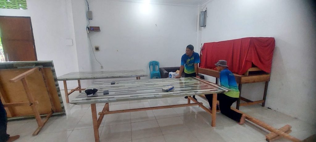 Panitia kata Rudy, menyiapkan 3 meja potong. Satu meja bisa diisi 6 petugas pemotongan sehingga totalnya 18 orang. Dan pada pelaksanaan nanti lokasi pemotongan di atas meja pada lokasi tertentu dan tak ada lagi lesehan