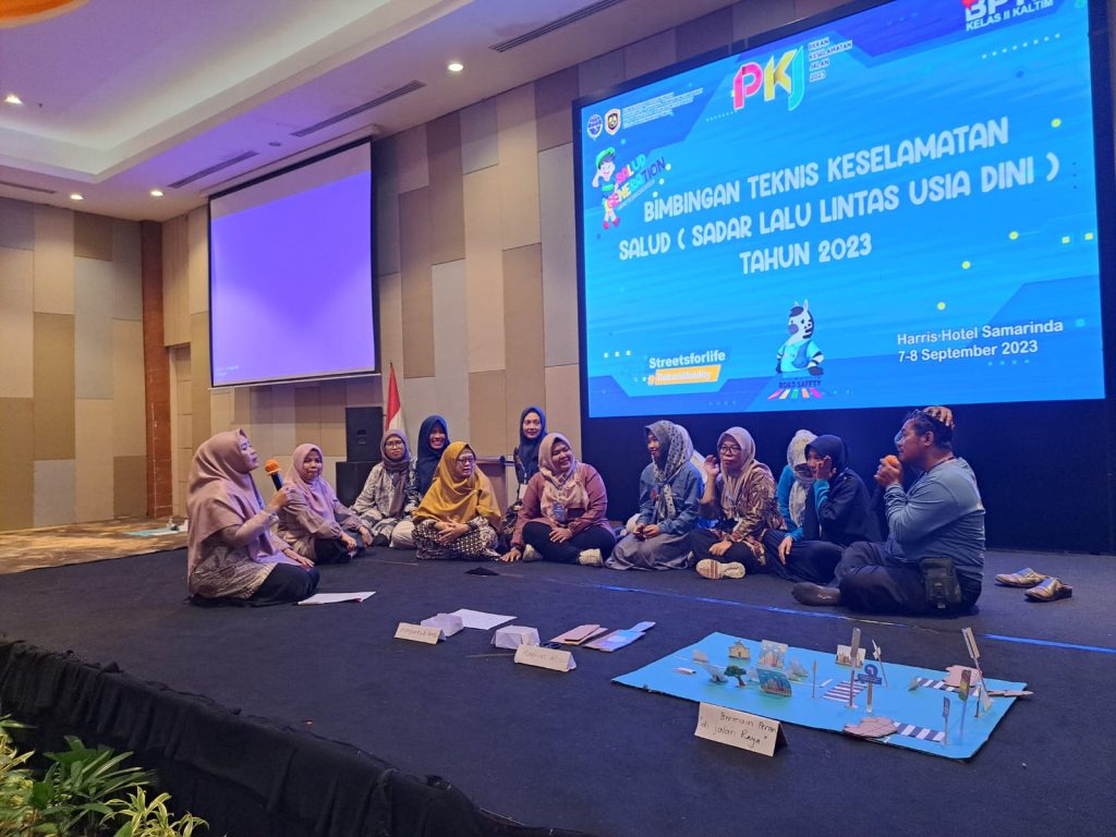 Narasumber yang memberi materi adalah Iwan Budiyono SSos MAP (Kasubdit Promosi dan Kemitraan Direktorat Sarana Transportasi Jalan Hubdat Kemenhub), Farah Flamboyan ST SPD (Tim Pokja Bunda PAUD Kaltim), Tri Susila Hidayati MSi (Bunda SALUD dan Dosen Politkenik Keselamatan Transportasi Jalan Tegal)