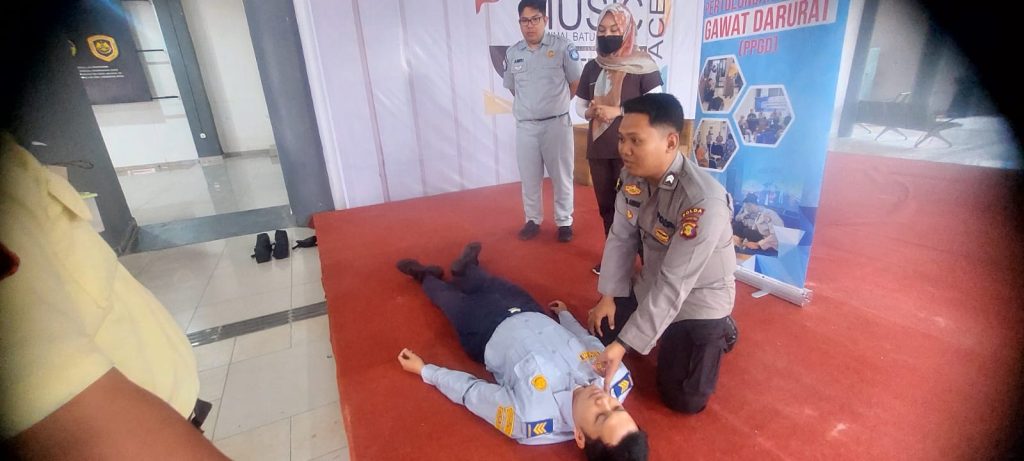 TINTAKALTIM.COM-Praktek kompresi 30:2 dilakukan saat Pertolongan Pertama Gawat Darurat (PPGD)  yang tujuannya agar menolong korban (pasien) sampai bantuan medis tiba. Kegiatan itu digelar di Terminal Batu Ampar (BA) Balai Pengelola Transportasi Darat (BPTD) Kaltim Ditjen Hubdat Kemenhub, Kamis (14/08/2025)