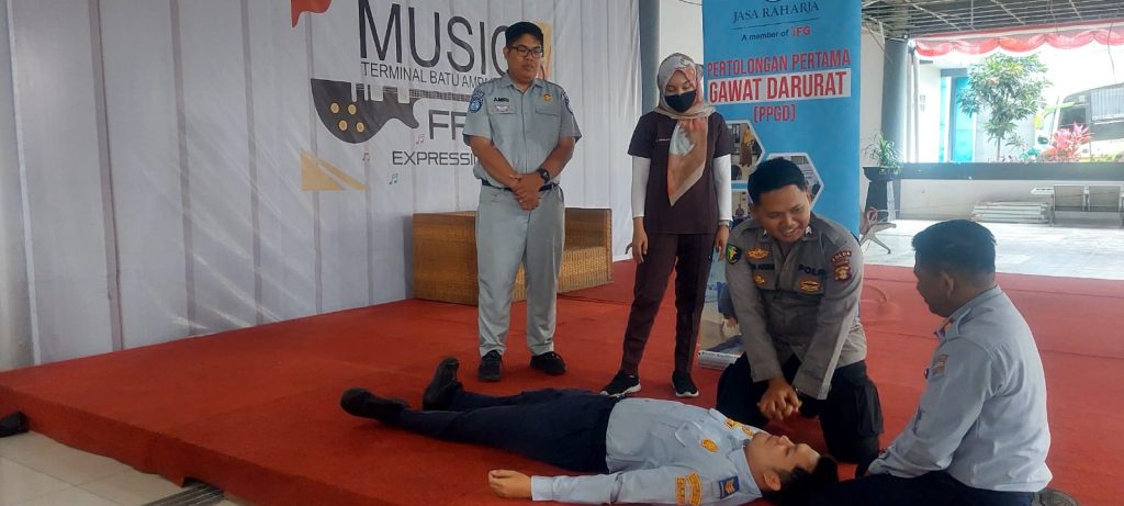 Praktek Kompresi 30:2 PPGD di Terminal Batu Ampar. Kerjasama BPTD, Jasa Raharja dan Bidokkes
