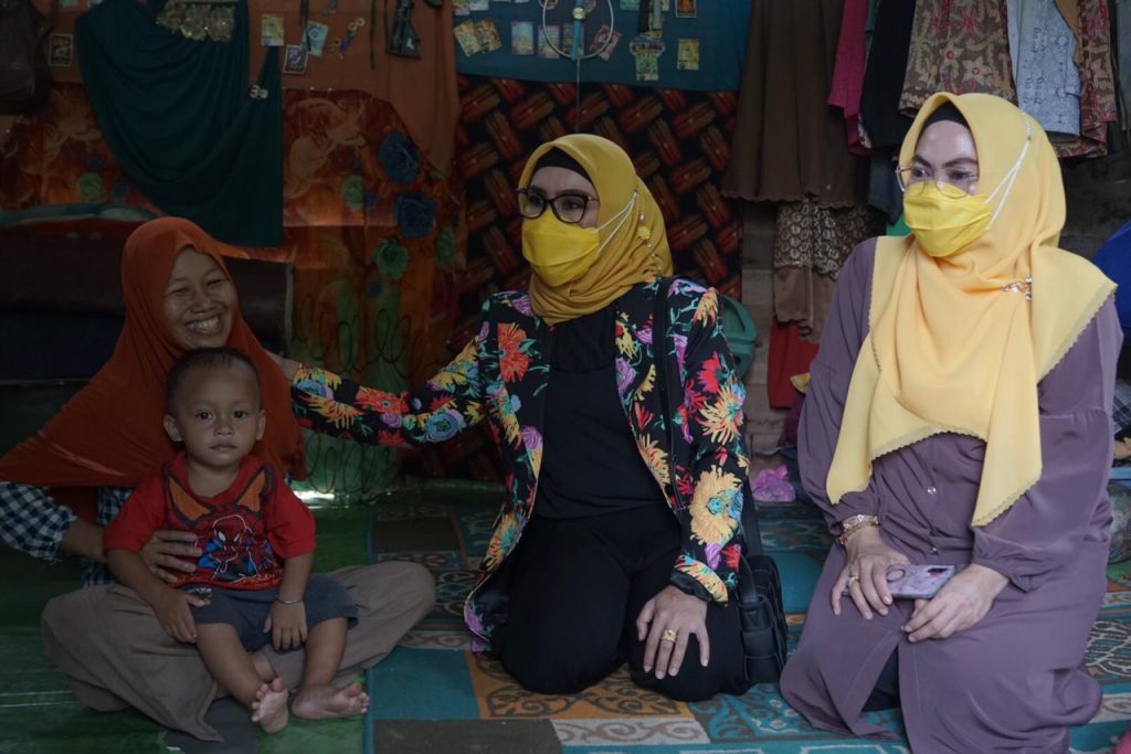 Kunjungan lokasi terakhir di RT 06 Kelurahan Margasari. Hj Nurlena dan rombongan harus memasuki gang dan berjalan beberapa meter menuju tempat acara termasuk Hj Suharti. Kendati tertatih tetapi ibu kandung Andi Arif Agung (A3) ini tetap semangat.