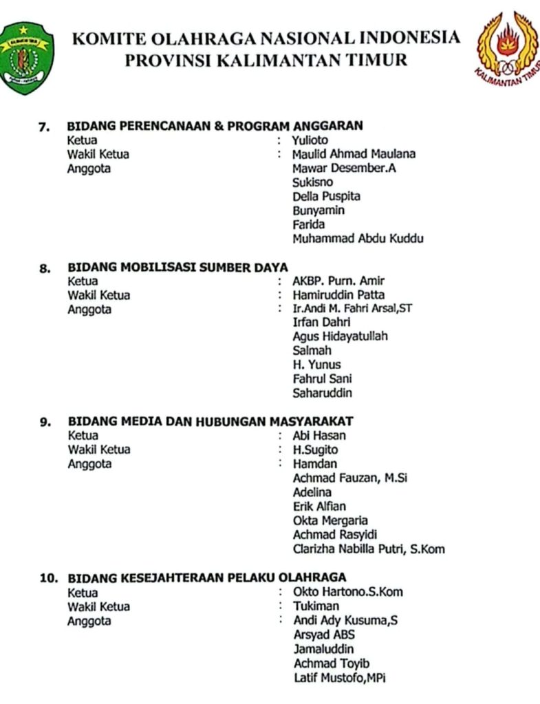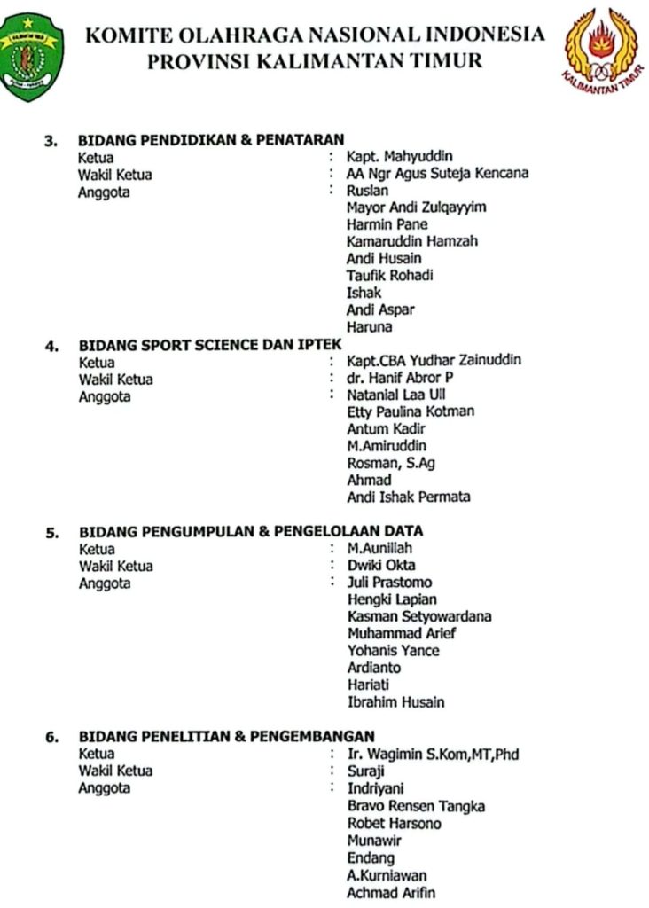 Menariknya, komposisi kepengurusan KONI Balikpapan ini gemuk karena bertujuan mengakomodir seluruh kepentingan cabor dan menjaga kekompakan. Bahkan, dewan penyantunnya figur kredibel Balikpapan dari gabungan multi-stakeholders