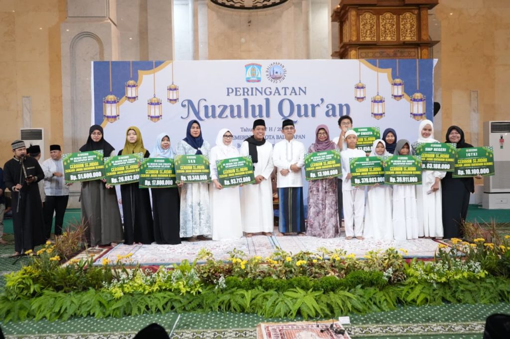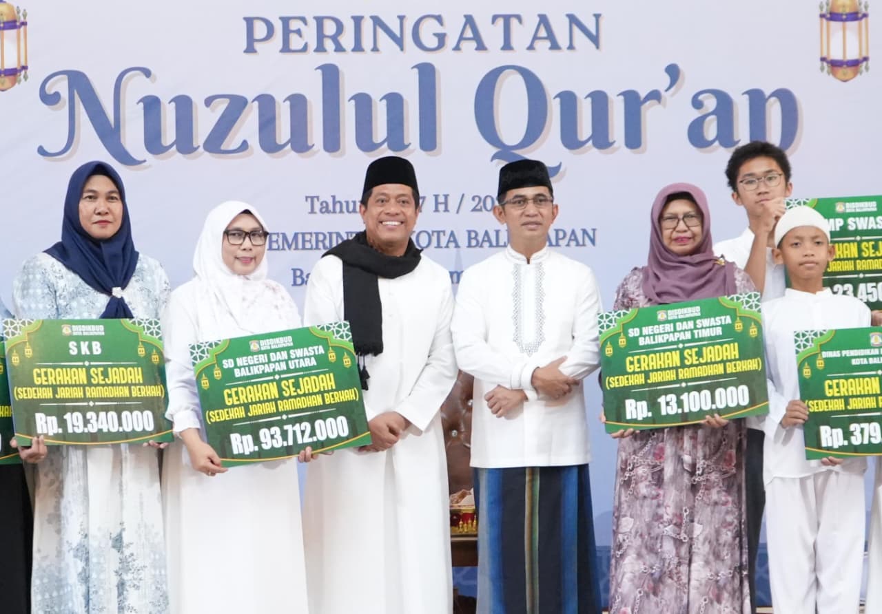 Program hasil Sejadah itu, diserahkan simbolis oleh Kadisdikbud dan para kepala sekolah dari sekolah berjenjang disaksikan Walikota Balikpapan Dr H Rahmad Mas’ud SE ME kepada Badan Pengelola Masjid Madinatul Iman Balikpapan Islamic Centre (BIC) pada peringatan Nuzulul Quran, Jumat (6/3/2026)