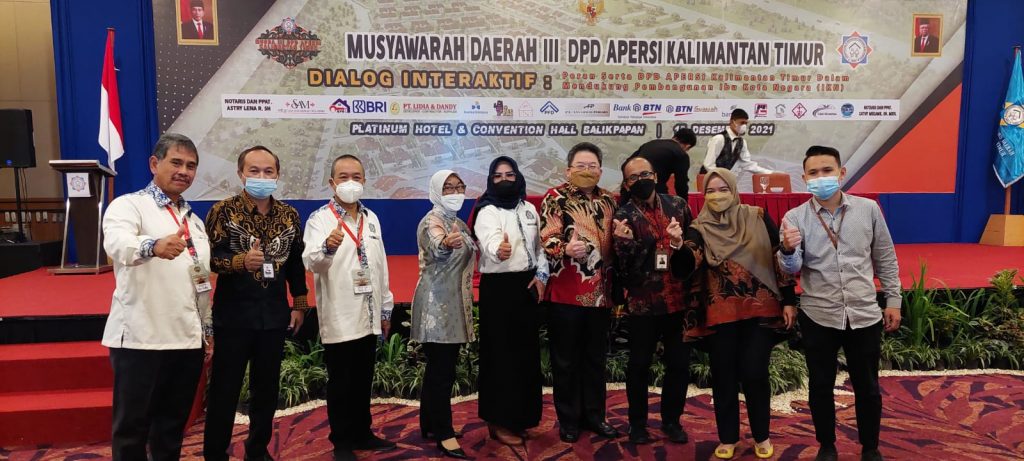 Acara itu dihadiri Ketua Umum DPP Apersi Junaidi Abdillah SE MM, Sekjen DPP Apersi Drs Daniel Djumali, Ketua DPD Apersi Kaltim Sunarti Amirullah, sejumlah pengurus Apersi dari beberapa daerah seperti DKI Jakarta, Bandung, Sulawesi Selatan (Sulsel), Bekasi, Kaltara, Surabaya, Ketua Kadin Kaltim Dayang Dona Faroek, jajaran pengurus Kadin Balikpapan dipimpin Yuli Novianti, Hasyim Malewa, Zaefuddin Zuhri dengan menghadirkan narasumber Kepala Bappeda Provinsi Kaltim Prof DR Aswin, Pemimpin Divisi Kredit Ritel dan Konsumen Bank Kaltimtara Taufikurrahman, Kepala Wilayah V Bank Tabungan Negara (BTN) Teguh Wahyudi dan Kasubag Tata Usaha BPN Samarinda, Ahmadi.