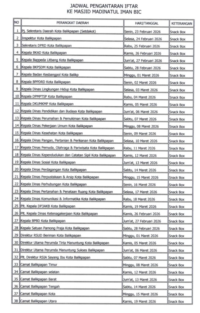 TINTAKALTIM.COM-Walikota Balikpapan Dr H Rahmad Mas’ud SE ME membuat legitimasi dejure dan defacto Badan Pengelola Masjid Madinatul Iman Balikpapan Islamic Centre (BIC) lewat pengukuhan. Dan, ingin Ramadan 2026 penuh agenda dan bermakna