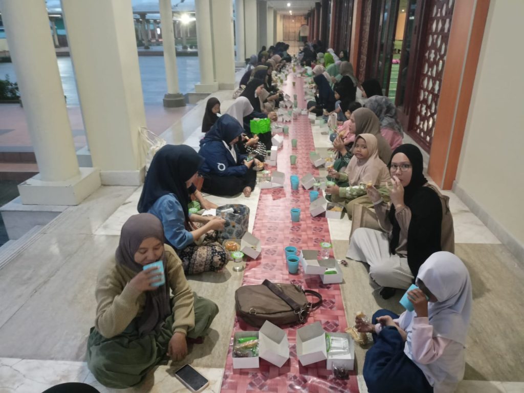 Saat berbuka bersama (ifthar), di sinilah wajah Ramadan paling jujur, ia mengubah fungsi ruang ibadah menjadi ruang sosial tanpa kehilangan kesakralannya, wujudnya silaturahmi antarjamaah