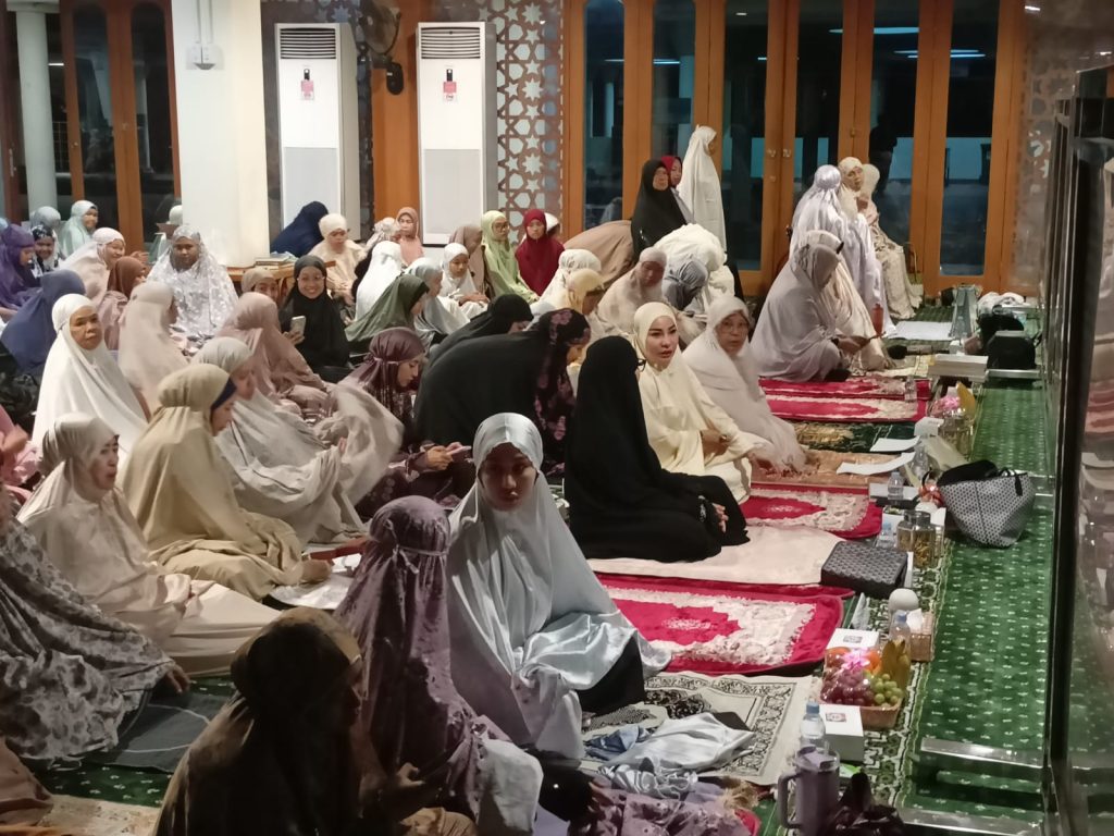 Di shaf jamaah wanita, terlihat ruangan full. Ini sejak awal pelaksanaan qiyamul lail. Bahkan, istri Kapolda Kaltim Irjen Pol Endar Priantoro, Natasha Synne membawa belasan rombongan ibu-ibu bhayangkari. Selain itu, istri Endar mengajak ibu kandungnya salat malam