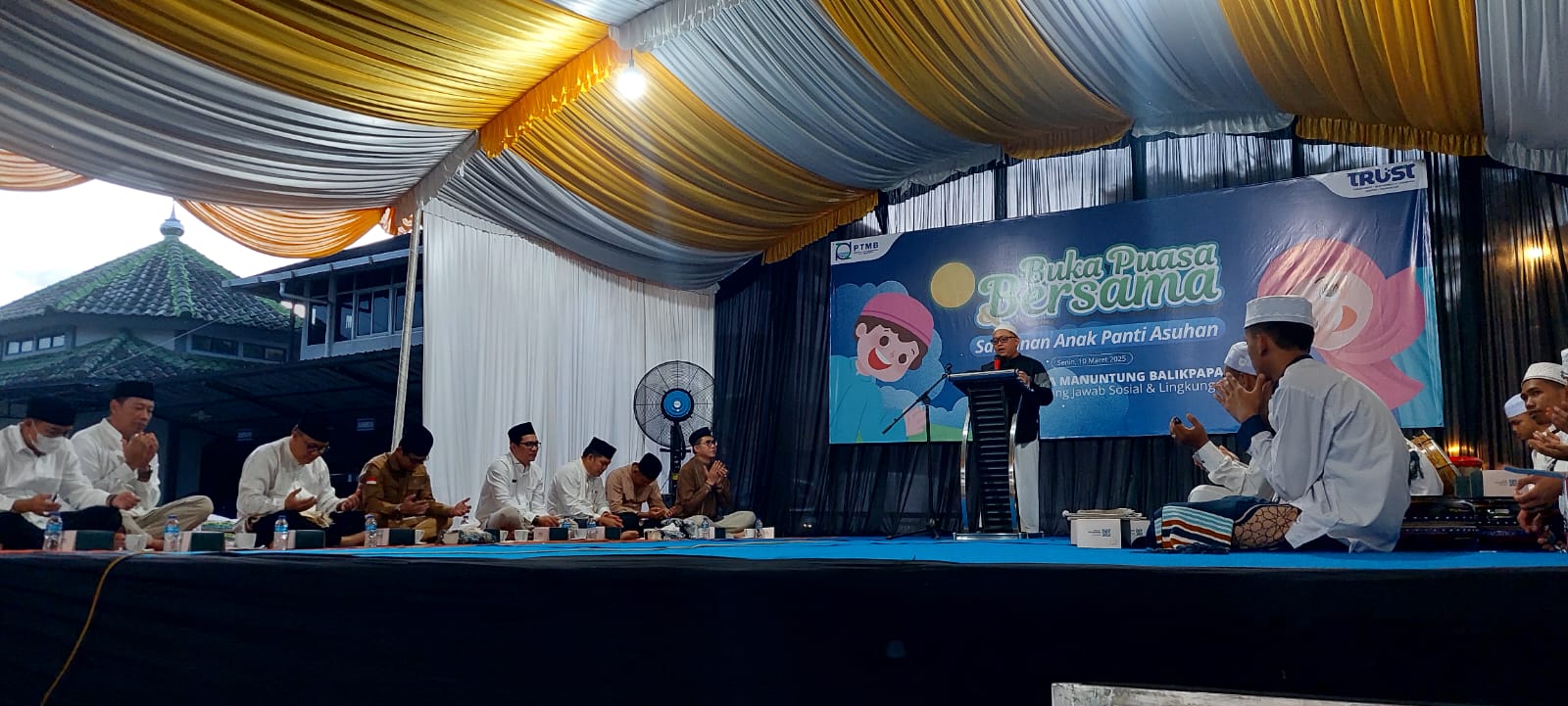 TINTAKALTIM.COM-Surprise! Dua pimpinan Kota Balikpapan Walikota H Rahmad Mas’ud SE ME dan Wakil Walikota (Wawali) Dr Bagus Susetyo hadir bareng di gelaran acara buka puasa bersama sekaligus kegiatan pemberian santunan kepada anak panti asuhan yang dilaksanakan Perumda Tirta Manuntung Balikpapan (PTMB) atau PDAM, Senin (10/3) di halaman Graha Tirta Building