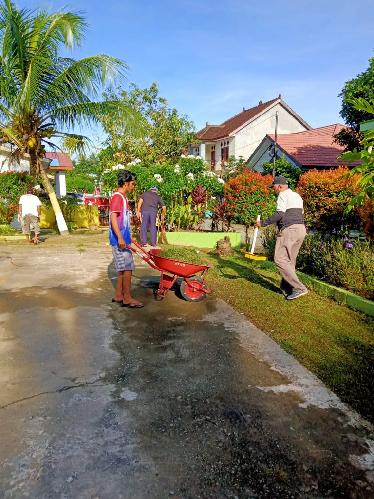 Ketua Masjid H Rahmadi, H Haidir dan lainnya terus terlihat bekerja. Tampak, di bagian lain, Ipon ikut menyapu dan terus mengawasi kerja-kerja warga yang dilakukan penuh keikhlasan demi mewujudkan solidaritas. Sementara, suami Bu RT, asyik dengan kesibukannya dan setiap kerja bhakti selalu mengendalikan mesin potong rumput.