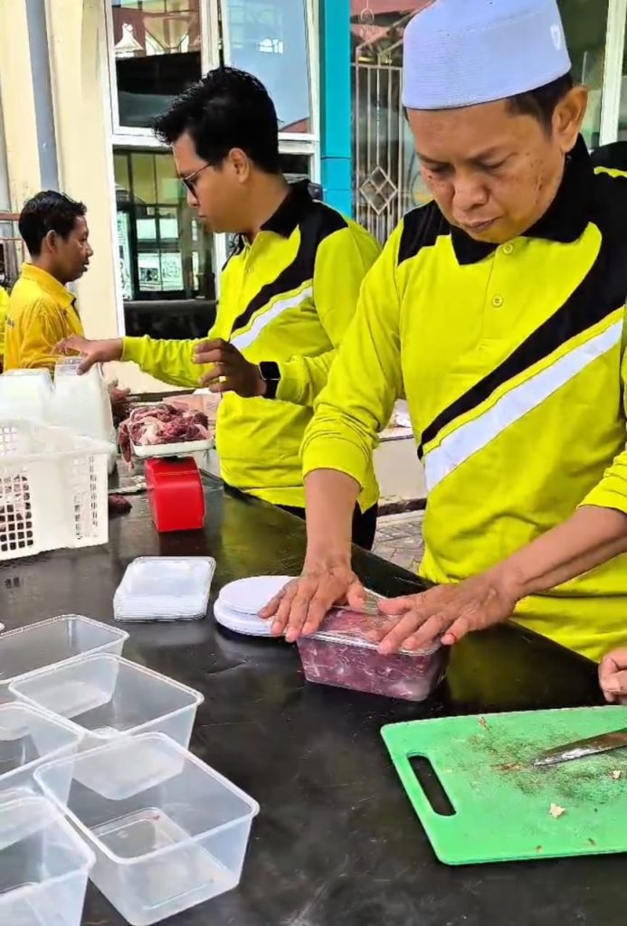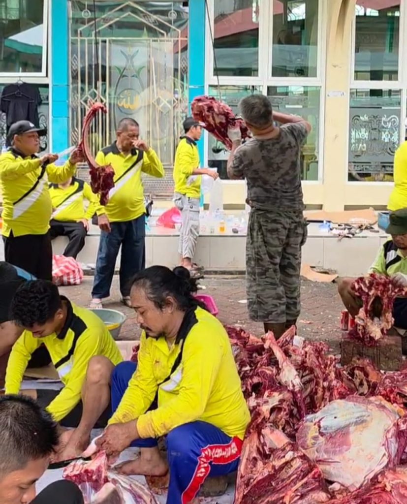 Menurut Kamal, dua penjagal andalan yakni Ustaz Azmi dan Ustaz Darto yang sebagai imam masjid dan hafidz Quran juga membantu proses penyembelihan hingga tuntas 19 ekor disembelih sebelum masuk salat Zuhur yang dimulai pukul 08.00 Wita.