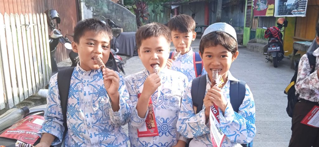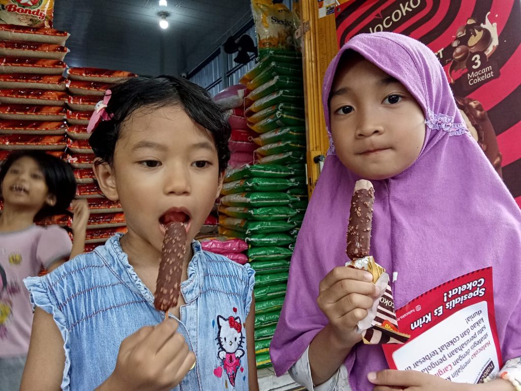 Anak-anak ikut berbaur menikmati lezatnya es krim halocoko ini saat digelarnya acara Berbagi Kebahagiaan di Setiap Sudut Negeri di area Balikpapan, medio November 2024. Dan, es krim cokelat ini dibagi gratis setiap hari kepada masyarakat yang dekat dengan outlet halocoko.
