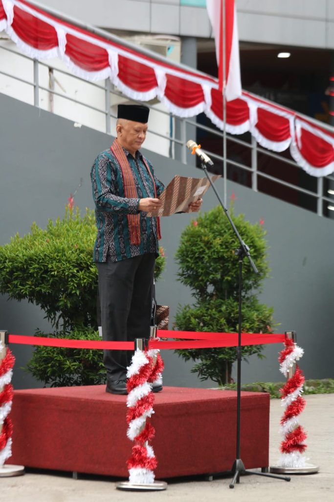 UPACARA: Kepala BPTD Kaltim Renhard Ronald membaca teks proklamasi dan hadir upacara di Dome serta sikap hormat peserta upacara kepada Merah Putih
