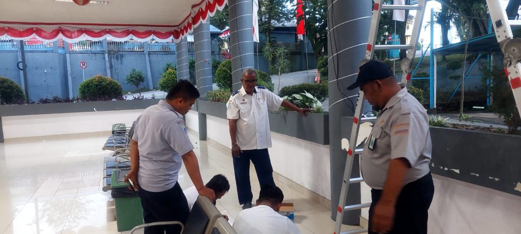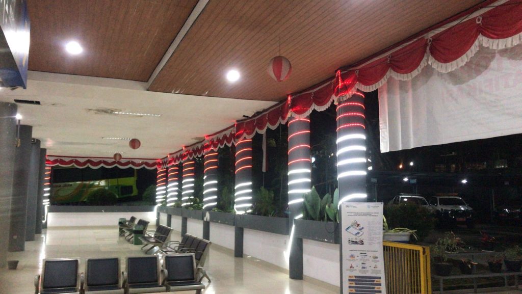 Kantor ini dipoles. Masuk terminal, hiasan merah putih sudah dipasang. Bahkan, teks berjalan (running text) dengan angka 80 berwarna merah putih melambangkan delapan dekade kemerdekan RI tertera Dirgahayu ke-80 RI pun terbaca jelas. Termasuk slogannya Bersatu, Berdaulat, Rakyat Sejahtera, Indonesia Maju.